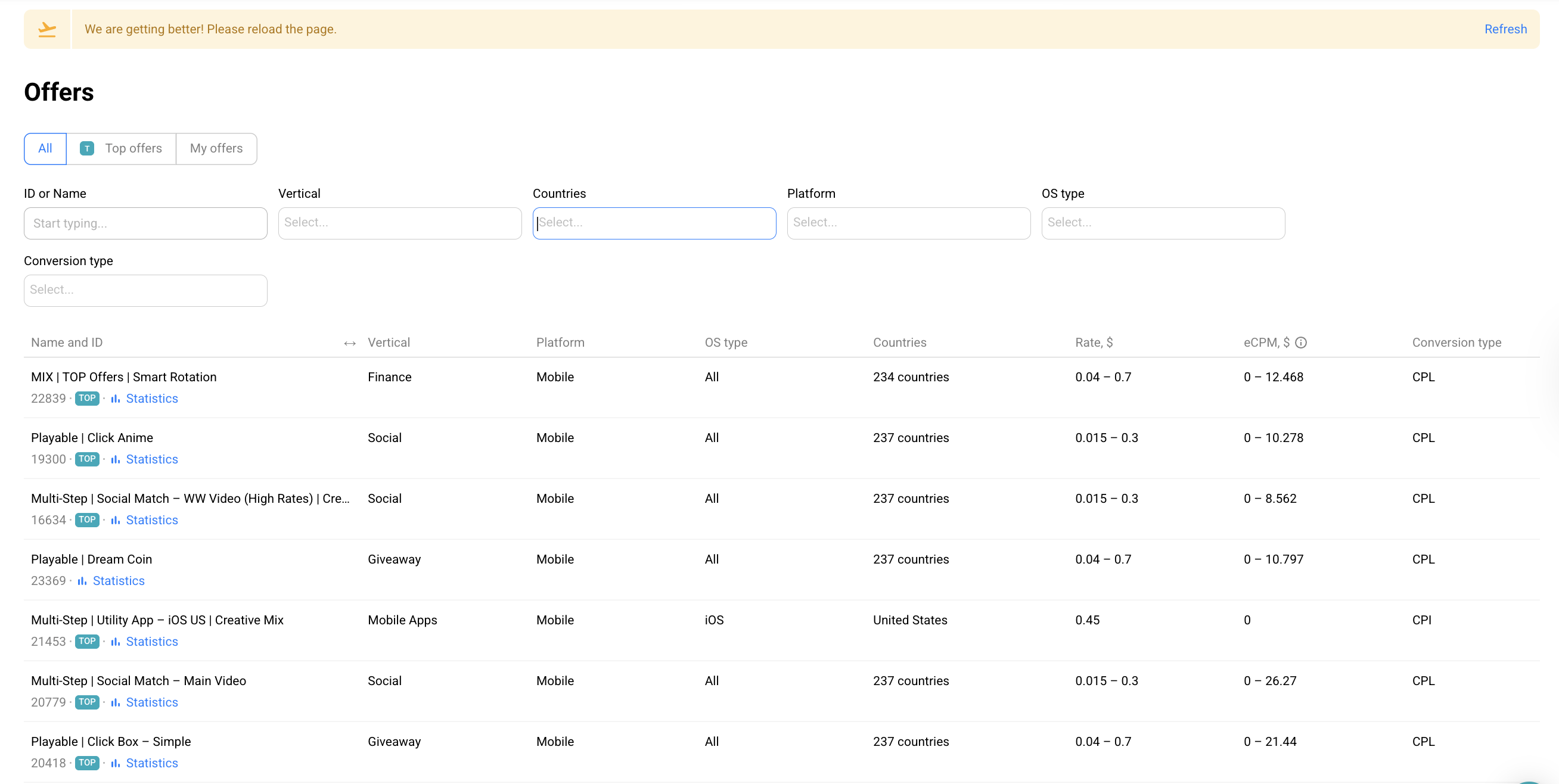 If performance drops in a specific GEO or traffic source, you can quickly switch to a similar offer and maintain your volume without rebuilding your entire setup. Since most offers are available worldwide, scaling and traffic reallocation become faster and far more efficient.